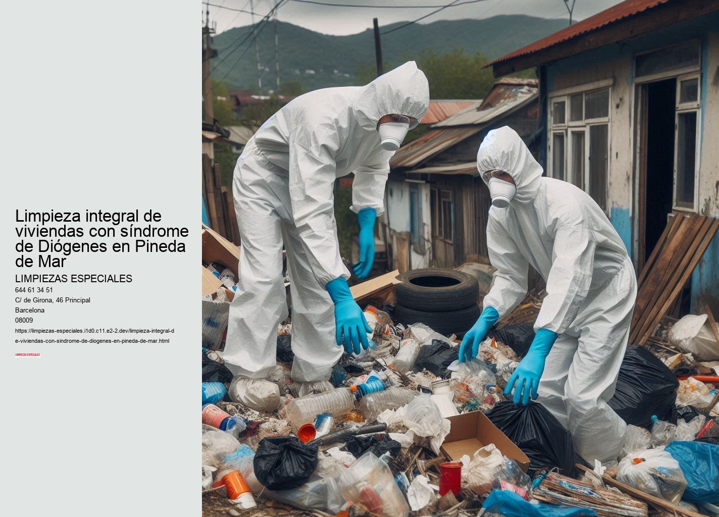 En Limpiezas Especiales Pineda de Mar, comprendemos la gravedad y complejidad del síndrome de Diógenes. Sabemos que enfrentar una situación de acumulación extrema puede ser abrumador y emocionalmente agotador. Nuestro objetivo es ofrecer la solución profesional y humana que necesita para devolver la habitabilidad y seguridad a su hogar. Con años de experiencia y un equipo altamente capacitado, estamos preparados para abordar cualquier desafío de limpieza, garantizando resultados excepcionales y una atención personalizada.