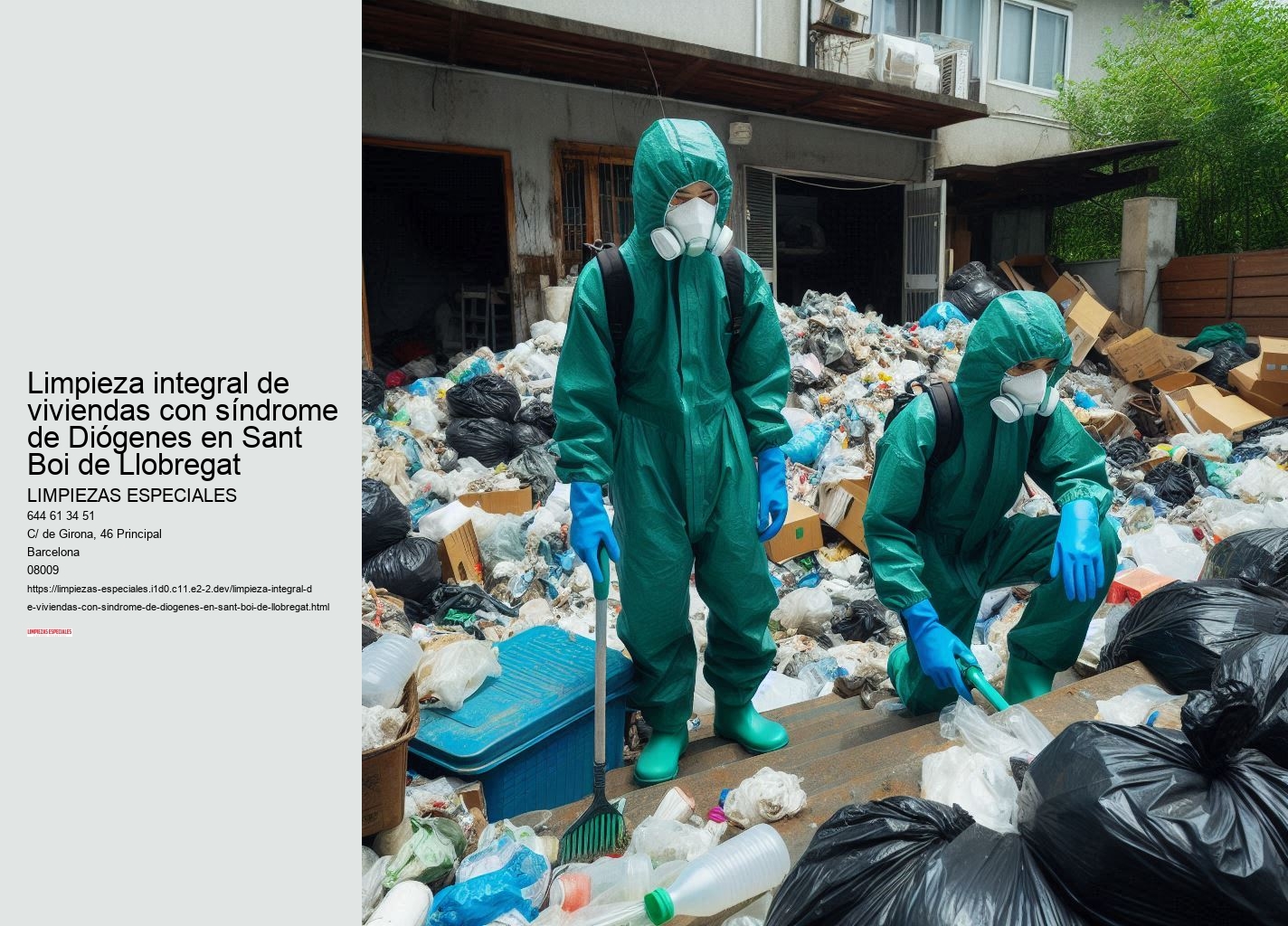 Invitamos a los lectores a contactar con Limpiezas Especiales para recibir ayuda y un presupuesto personalizado. Desinfecció de superfícies Empresa experta en Limpieza integral de viviendas con síndrome de Diógenes en Sant Boi de Llobregat Garantizado 100% No esperes más para recuperar la habitabilidad y seguridad de tu hogar.