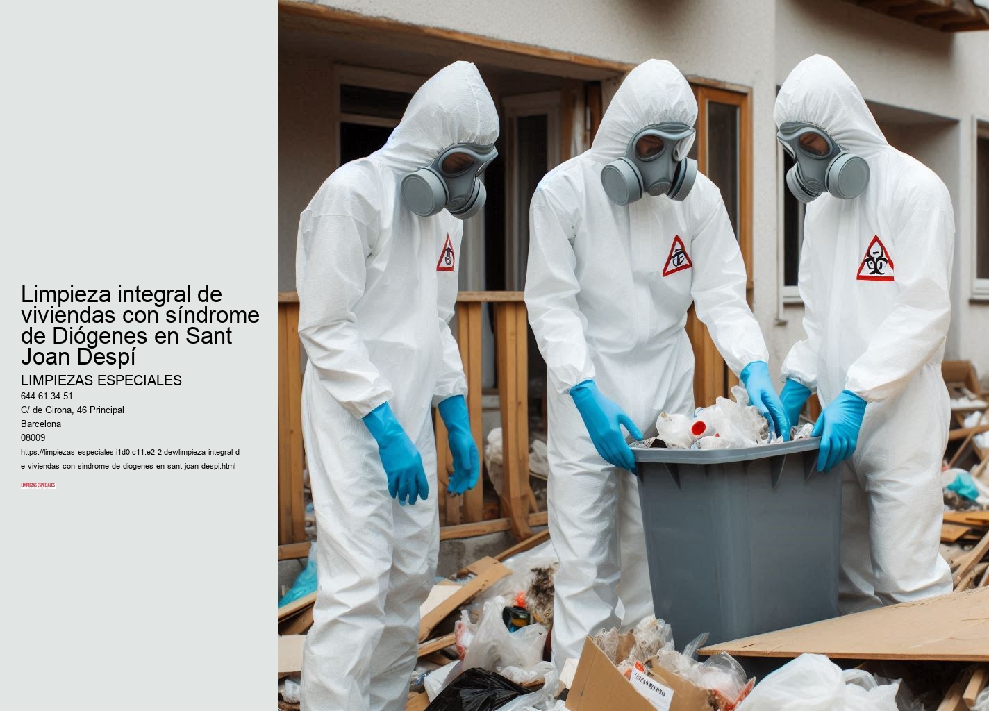 Ofrecemos consultas sin compromiso y asesoramiento sobre servicios sociales adicionales. Garantía total en Limpieza integral de viviendas con síndrome de Diógenes en Sant Joan Despí !Contacta ahora¡ Esto incluye orientación sobre recursos disponibles para ayudar a las personas afectadas.